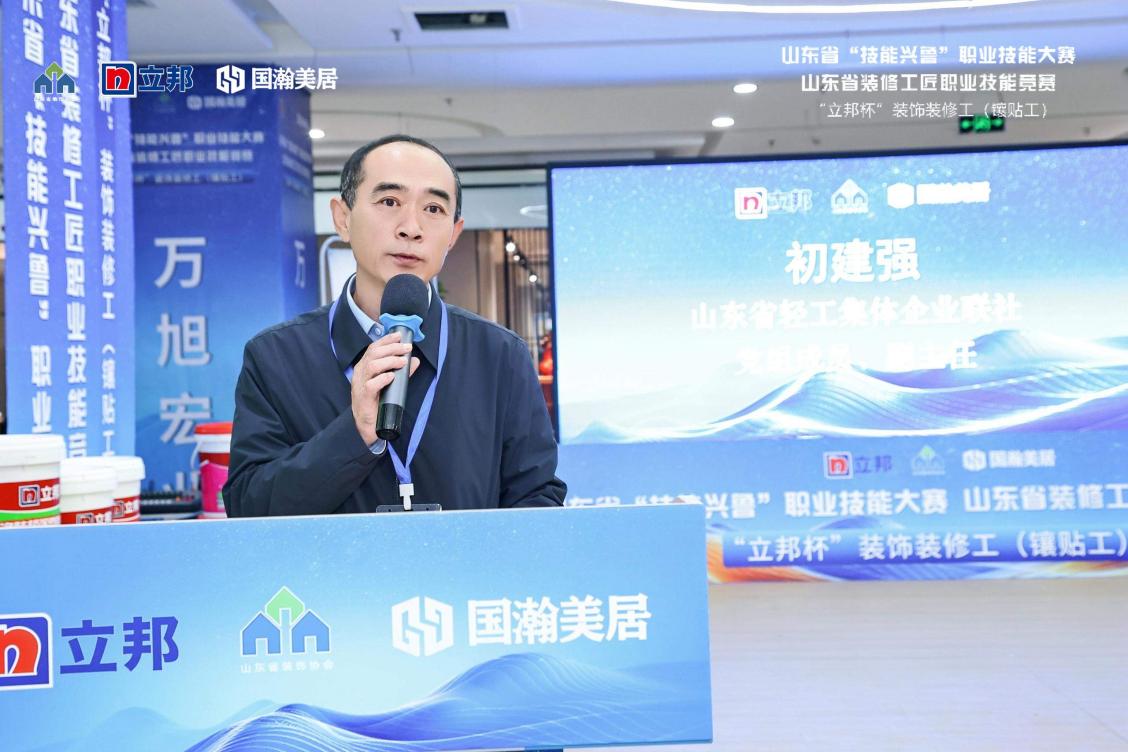 山东省轻工集体企业联社党组成员/副主任初建强在致辞中指出,技能人才是人才队伍的重要组成部分,是加快推动技术创新和实现科技成果转化不可缺少的重要力量,希望通过装修工匠职业技能竞赛的举办,进一步提高专业技术人才技能和综合业务素质,营造“劳动光荣、技能宝贵、创造伟大”的社会风尚和精益求精的工匠精神、敬业风气,为我省装饰行业人才队伍的建设,培养专业人才奠定扎实的基础。