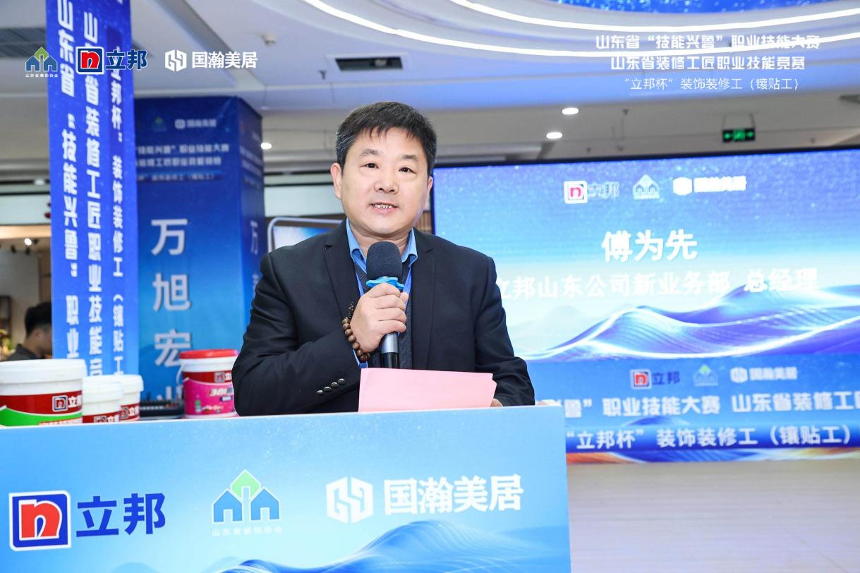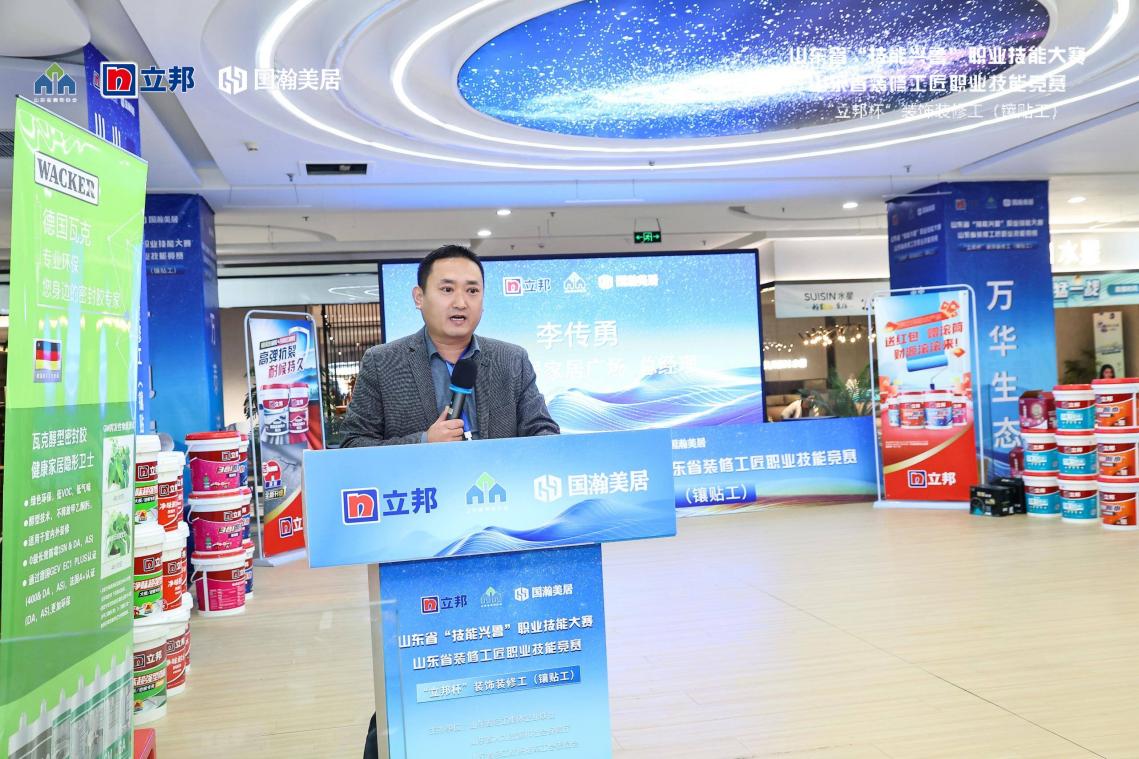 国瀚美居家居广场总经理李传勇首先致欢迎词,他表示此次“立邦杯镶贴工”装修铺贴大赛在济南黄台国瀚美居举办,是各级领导对国瀚美居的工作肯定和信任,也是对建材家居工作的促进和鞭策的作用。