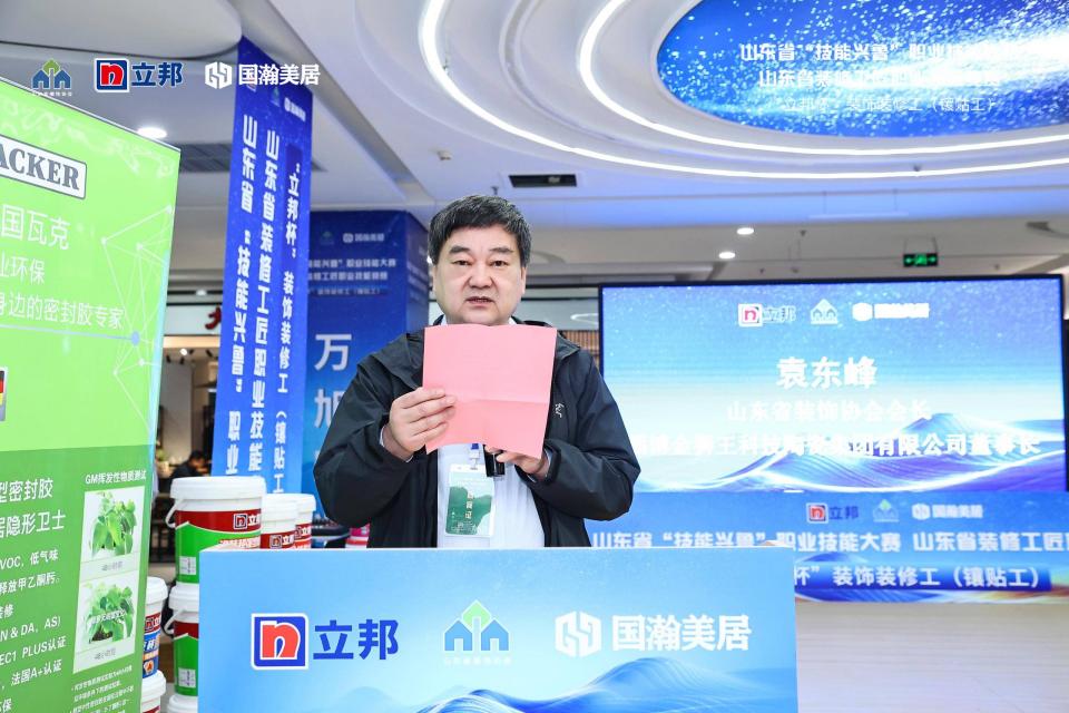 山东省装饰协会会长/淄博金狮王陶瓷有限公司董事长袁东峰在致辞中提到:本次大赛举办,旨在一步推动装饰装修行业从业技能人才的队伍建设,有效提高从业人员技艺水平,树立“学技术、钻技能、练本领、强素质”的行业新风,充分发挥技能大赛在技能人才培养中的重要作用,激发广大从业人员学技术、练本领、比技能、创一流的工作热情。期待通过这次竞赛,能够发掘出更多技艺精湛、德才兼备的杰出工匠,为我省装饰行业的发展注入新的活力和动力。