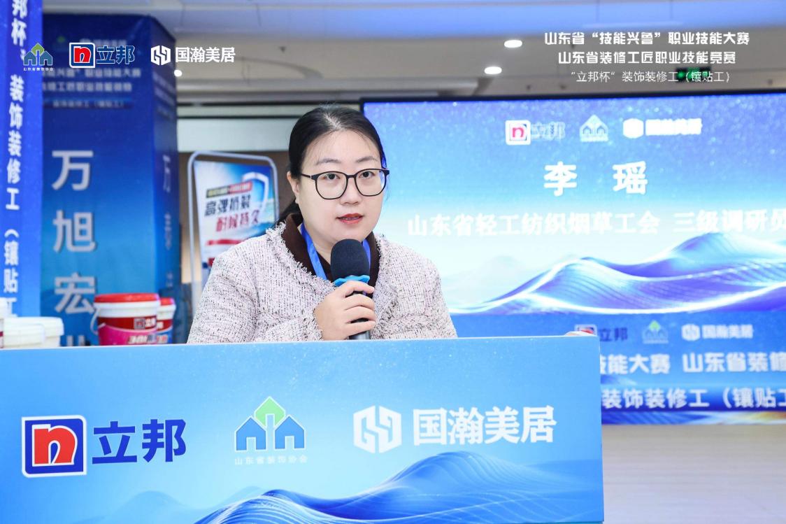 山东省轻工纺织烟草工会三级调研员李瑶对此次大赛的组织给予了高度赞扬和肯定,并表示此次大赛为全省镶贴工匠提供了展示精湛技能、相互切磋技艺的平台,进一步弘扬了工匠精神,营造了学技能、练技能、比技能的良好氛围。