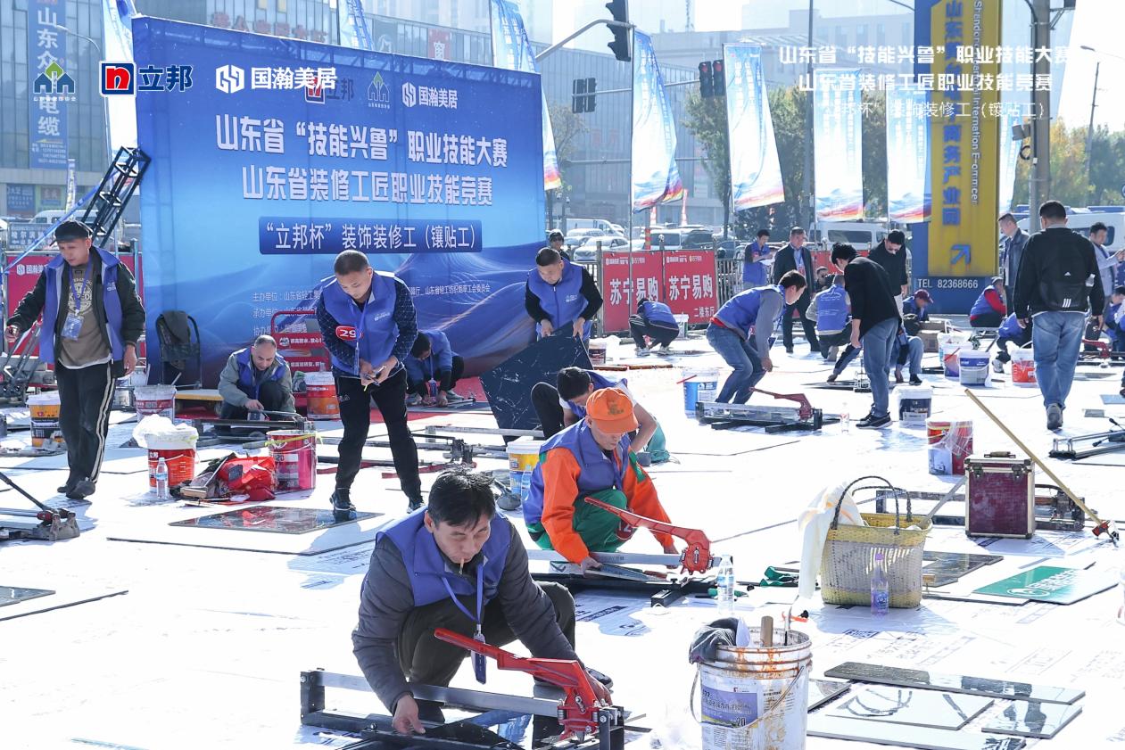 11月2日,由山东省轻工集体企业联社、山东省人力资源和社会保障厅、山东省轻工纺织烟草工会委员会主办,山东省装饰协会、立邦装饰材料有限公司承办,国瀚美居家居广场、诺贝尔瓷砖、德国瓦克密封胶、山东智源商贸协办的--山东省“技能兴鲁”职业技能大赛山东省装修工匠职业技能竞赛“立邦杯”装饰装修工(镶贴工)比赛在国瀚美居家居广场隆重举办。