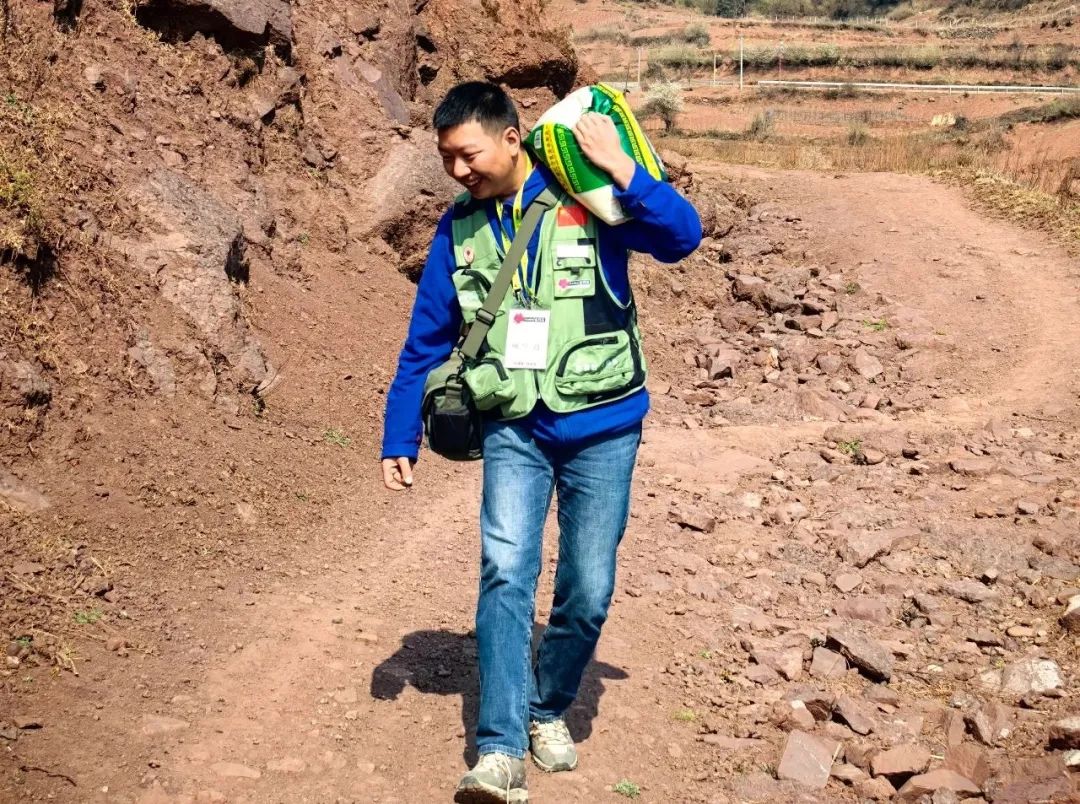 除了做家访,基金会成员及固正保和工作人员还为一些困难学生家庭准备了爱心物资,肩扛手提,将一袋袋大米、鸡蛋和食用油送进学生的家门。