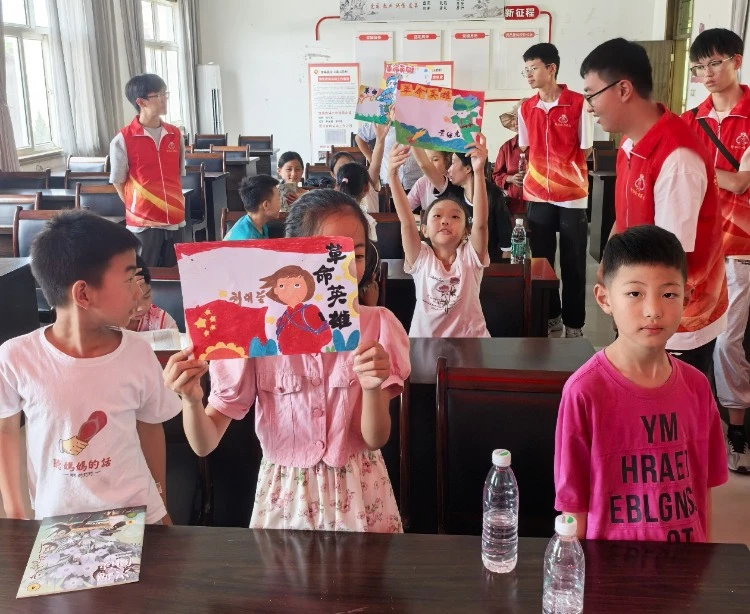 在基层社区与乡村,实践团变身为红色传承的“践行者”。踏入芝麻村社区,为初中生和老人讲述江姐绣红旗、小萝卜头求知等红岩故事,以问答共情、信物传承为经,促成代际间红色记忆的共鸣;在李埝社区,实践团先以问卷摸清不同年龄层居民对红色精神的认知,再用井冈山、西柏坡精神等鲜活案例进行讲解,让抽象精神变得具体可感;在东海县房山镇山前村社区,实践团开展“学雷锋,树新风”实践活动,用故事宣讲点燃青少年对英雄的崇敬,同时借绘画创作描绘出对革命风采的理解,将红色基因注入青少年成长轨迹。