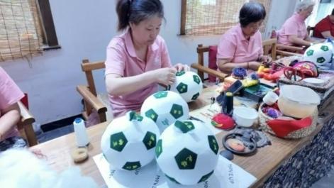 马庄香包科教文化所内师傅们制作″苏超″足球香包图。吴东兴供图