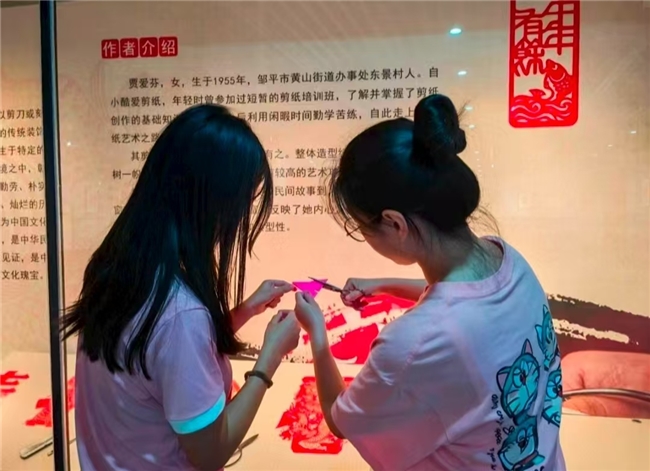 曲阜师范大学文学院“非遗拾遗,匠心筑梦”社会实践队15名成员,于7月10日至30日返回山东、新疆等家乡省份,深入邹平、喀什、即墨、杨家埠、德州、潍坊六地博物馆及非遗传承基地,开展为期二十余天的非遗保护实践活动。大学生们跟随传承人系统学习技艺,参与实际生产环节,探索非遗在当代的存续与发展路径。 在邹平剪纸工坊,实践队员在传承人指导下进行实操训练。老师傅现场演示“三转两停”的核心技法,强调其源于对自然物象的细致观察。队员们学习创作包含喜鹊、石榴、莲花等传统吉祥纹样的剪纸作品,这些纹样承载着民众对美好生活的普遍期盼。