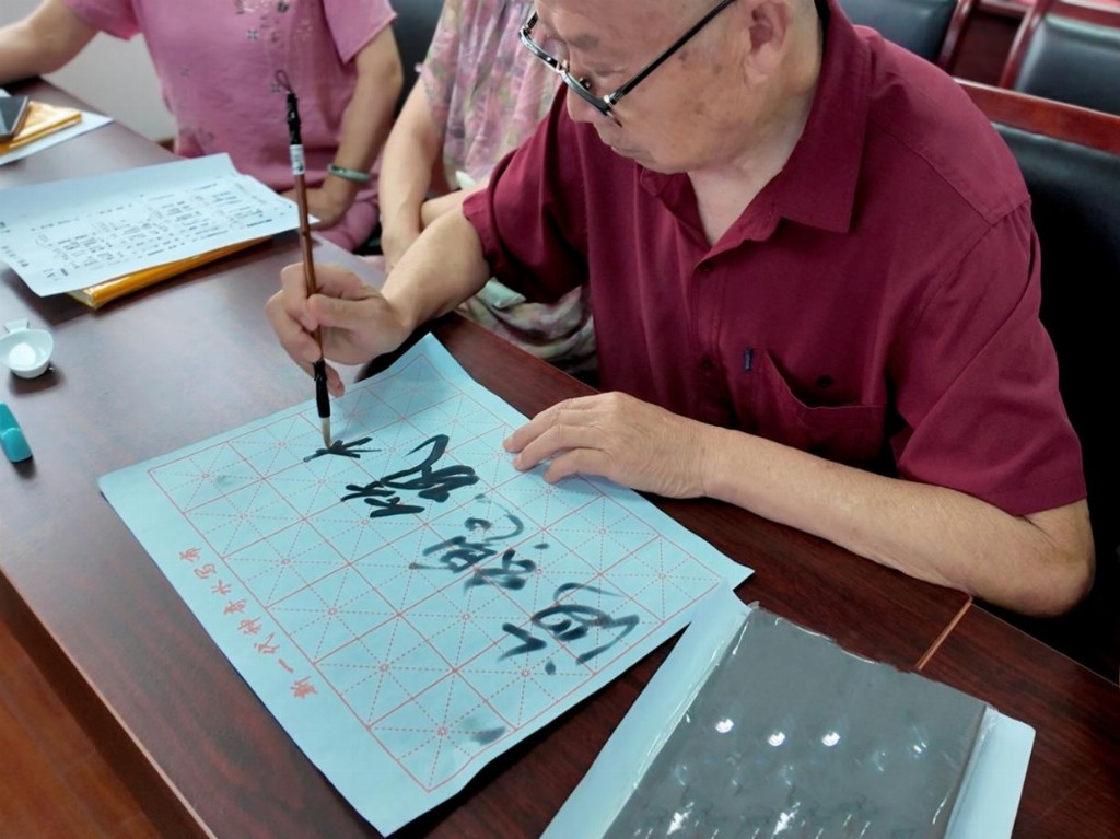 为触摸海军精神的文化根脉,活动转而以中国传统文化为密钥,带领留守儿童们从文化根脉中感受海军精神的深厚底蕴。让他们从传统文化故事中,读懂海军精神并非无源之水,而是深深植根于民族文化沃土的精神传承。其中,一位社区退伍老兵在听完实践团宣讲后,挥毫写下“海魂筑梦”四个大字,笔墨间满是对海军精神的认同。这场代际交流不仅让红色记忆得以传承共鸣,更让同学们在潜移默化中深化对海军精神的理解,实现知识学习与家国情怀培育的双重提升。