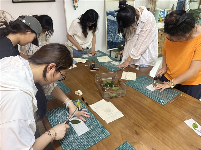南通大学杏林学院淮水墨澜实践团开展“学习捶草印花技艺,为两岸文化交流蓄力”社会实践活动