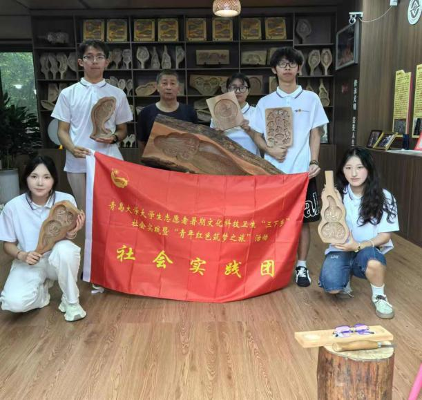 传承人向实践团成员传授雕刻技艺。仇安好 供图