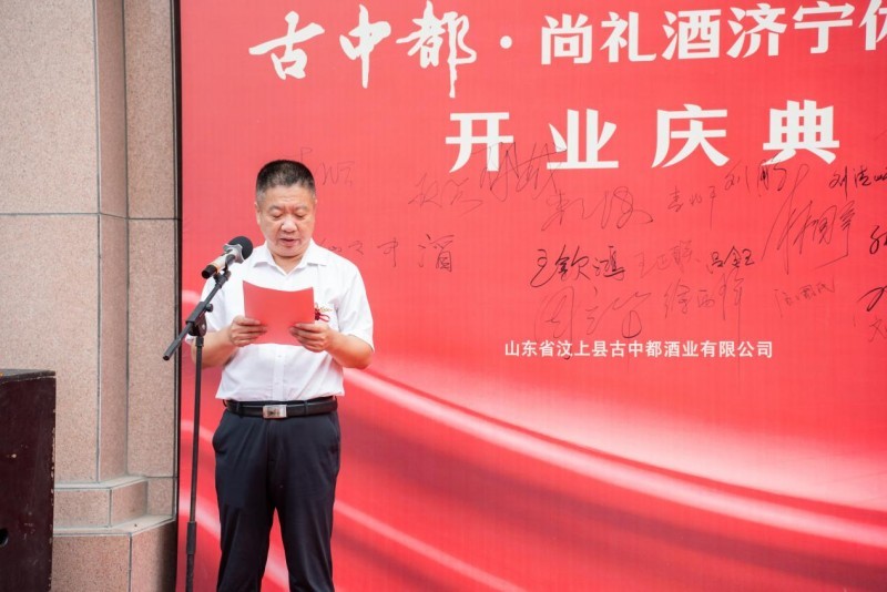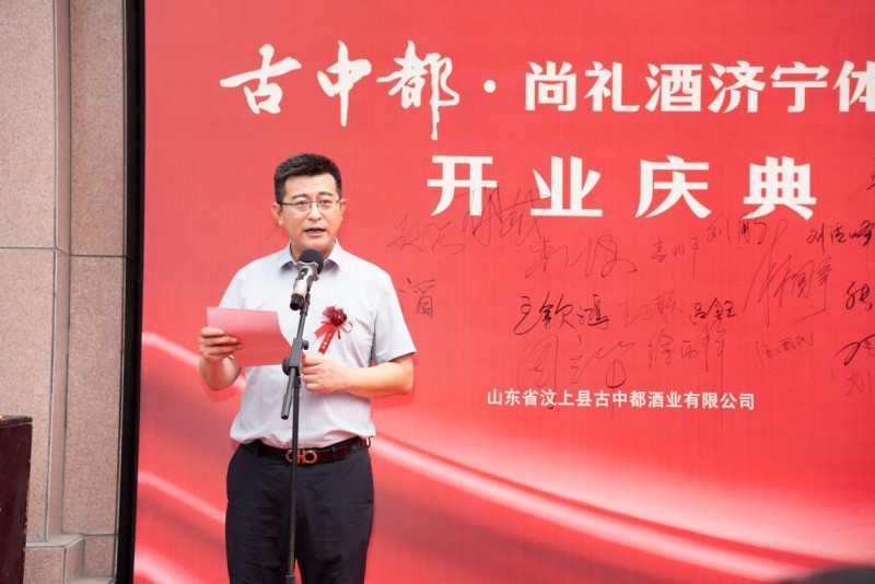 开业典礼现场氛围庄重而热烈,汶上县古中都酒业总经理王思贞首先致欢迎辞,对各位嘉宾的到来表示衷心感谢。王思贞总经理表示,今天,古中都·尚礼酒济宁体验馆开业,是我们“扎根汶上、拓展济宁”战略布局里,最温暖的一步。“扎根汶上”,是我们永远不变的根——我们守着汶上的水土、汶上的文化、汶上人的初心,把每一滴酒都酿出家乡的味道;“拓展济宁”,是我们想把这份家乡的温暖分享出去——济宁是我们的“家门口”,济宁的父老乡亲也是自家亲人,我们想通过这个体验馆,让大家不用来回奔波,就能摸到古中都酒业这77年的匠心,尝到带着汶上温度的古中都·尚礼美酒。