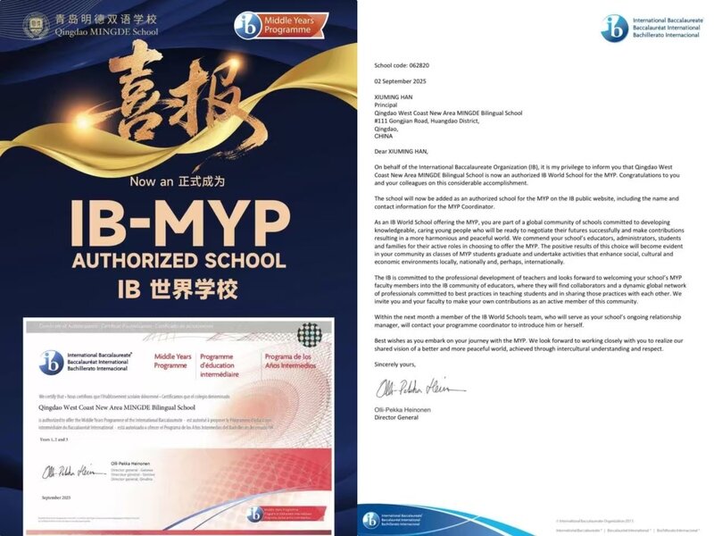 重磅喜讯|青岛明德双语学校成功获得MYP授权,全面贯通IB世界学校体系