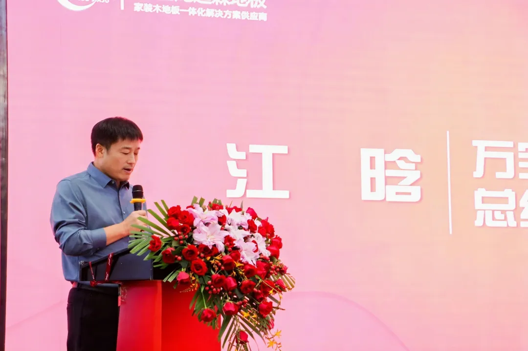 山东蓝谷家居·万宝龙迪森地板总经理江含致辞:向长期支持与信赖品牌的家装伙伴表达了诚挚的感恩之情。希望通过此次盛典,全方位展示品牌的企业文化、团队精神与核心价值,进一步提升万宝龙迪森地板的品牌影响力,为每一位合作伙伴注入坚定的合作信心。