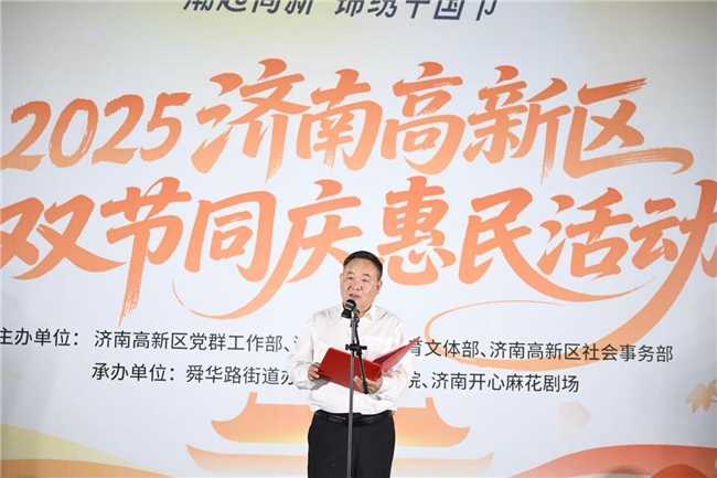 随后,济南高新区管委会教育文体部党组书记、部长高一鸣致辞。他表示,本次活动既以文化为桥,串联传统节日内涵与年轻群体喜好,彰显高新区“传统与现代交汇、创新与人文融合”的独特气质,更以惠民为初心,希望市民在团圆佳节中既能感受文化自信,也能收获满满欢乐。