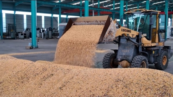 走进兖州区兴隆庄街道汇康煤炭运销公司,一派忙碌又安心的景象映入眼帘:平整的水泥地面上,金灿灿的玉米铺满大半空间,一台挖掘机正缓慢移动,将堆积的玉米摊成均匀薄层,几位农户手持木锨,跟在机器后修整边角,确保每一粒玉米都能接触到空气。