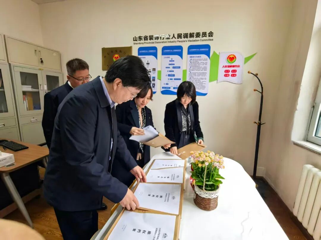 本次活动以“观摩规范化建设、交流实操经验、共促行业提升”为主题,重点聚焦行业消费维权工作站的标准化建设与运营。在山东省装饰协会执行会长兼秘书长杨雯雯的陪同下,大家实地察看了工作站调解室(接待区、调解区、档案区)功能布局,详细查阅了标准化纠纷调解台账等。