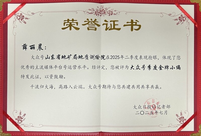 喜讯!山东省地矿局地质测绘院蝉联大众号季度金牌小编荣誉称号
