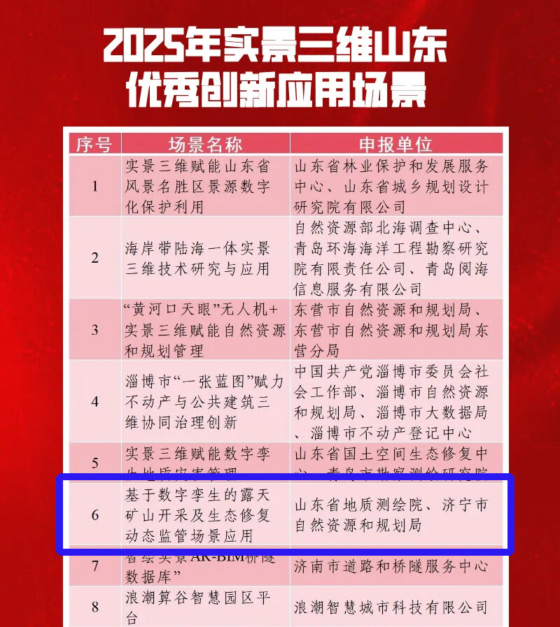 喜讯!山东省地矿局地质测绘院创新成果入选2025年实景三维山东优秀创新应用场景