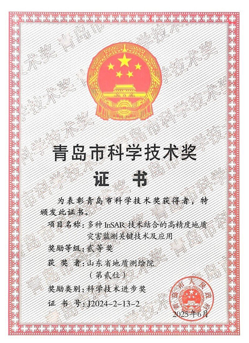 喜讯!山东省地矿局地质测绘院首获青岛市科学技术奖